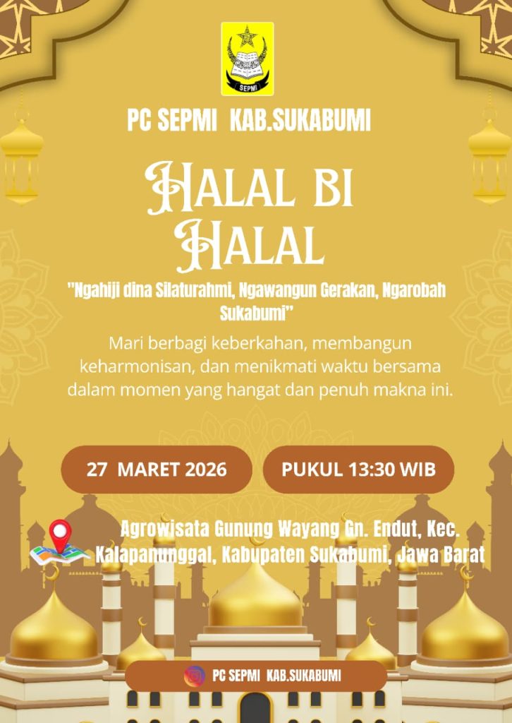 Sukabumi, 27 Maret 2026 — Pengurus Cabang Serikat Pelajar Muslimin Indonesia (PC SEPMI) Kabupaten Sukabumi menggelar kegiatan Halal Bi Halal sekaligus Rapat Kerja Tahun 2026 yang bertempat di Agrowisata Gunung Wayang, Gunung Endut, Kecamatan Kalapanunggal, Kabupaten Sukabumi, Jawa Barat, Jumat (27/3/2026).
